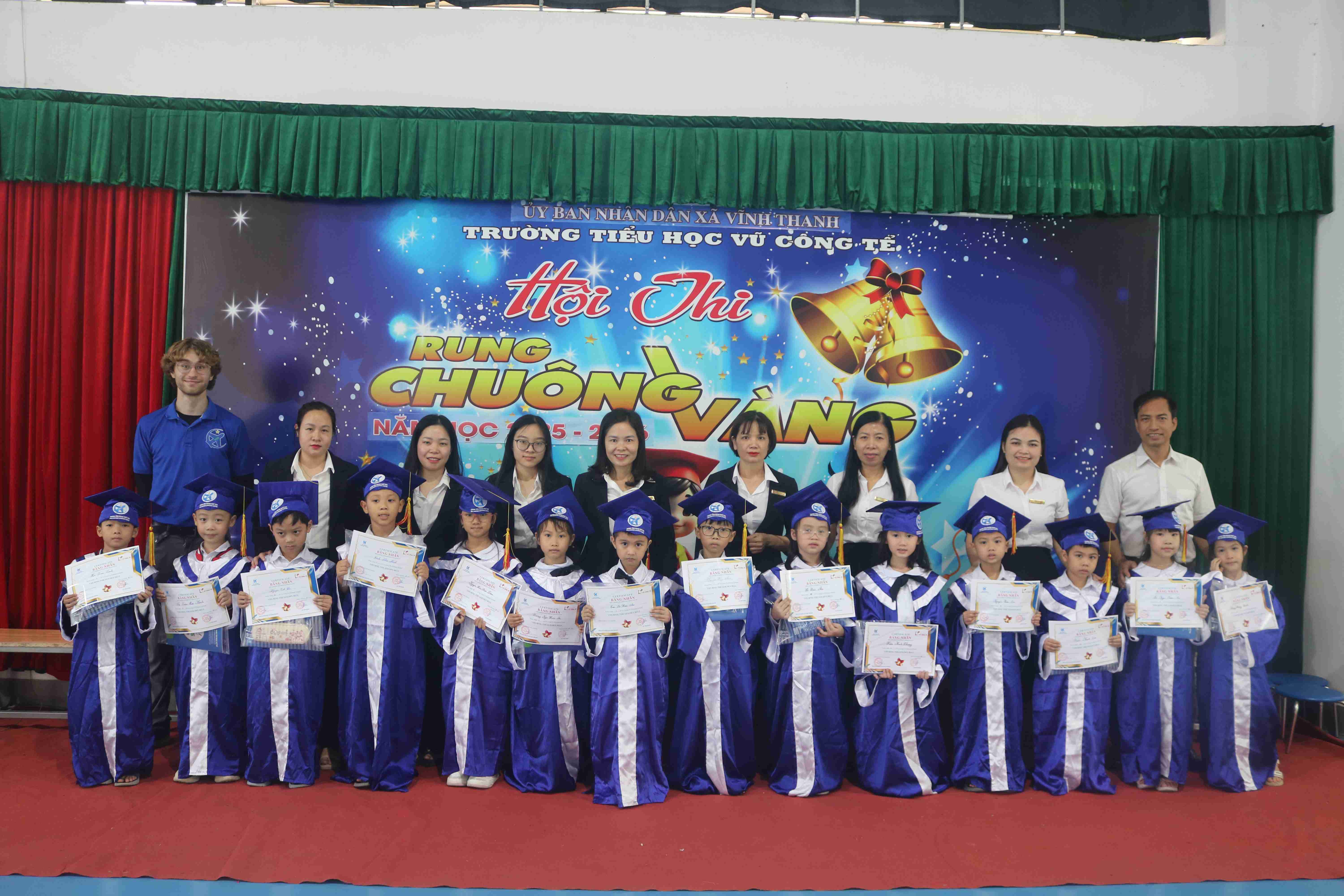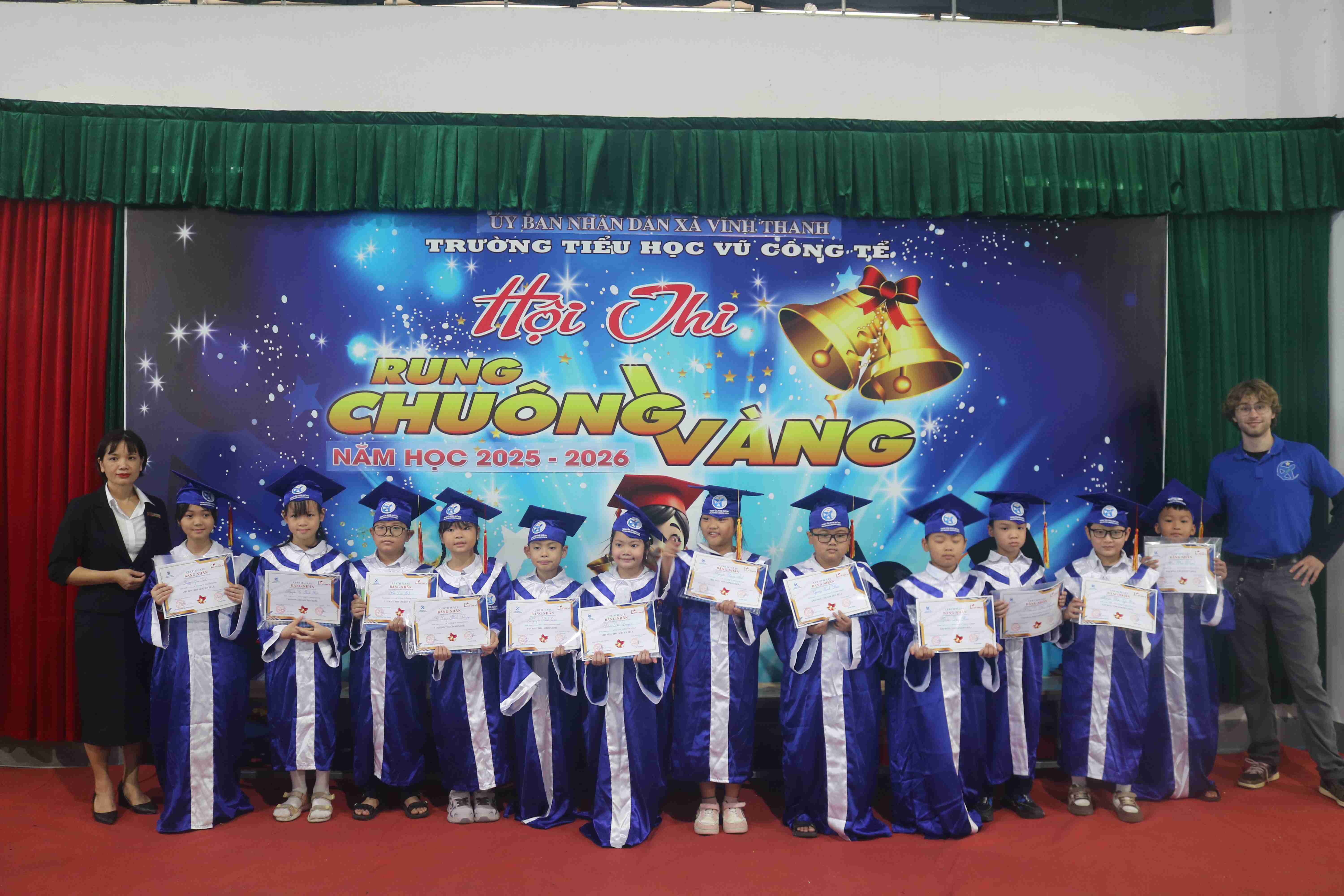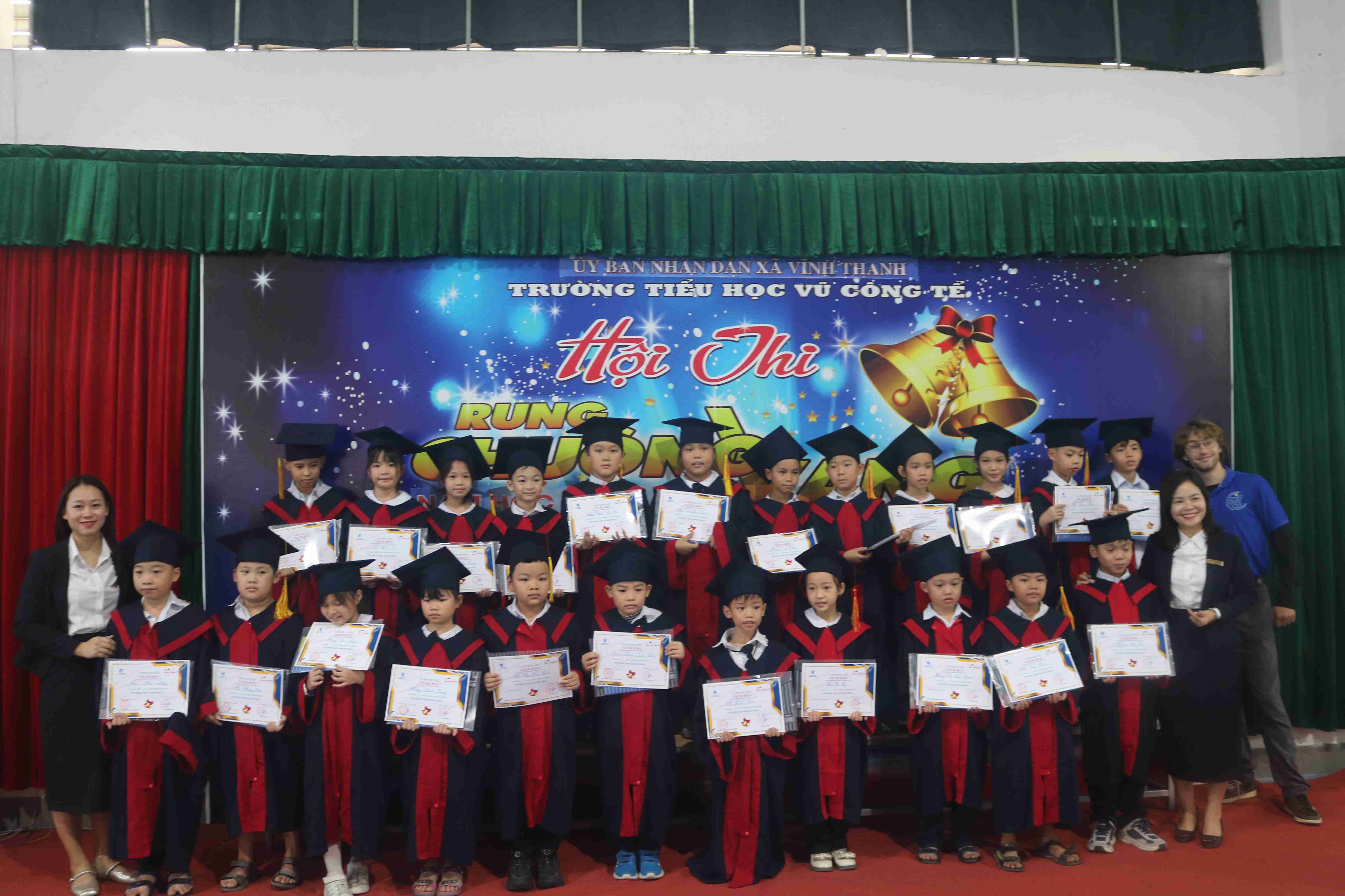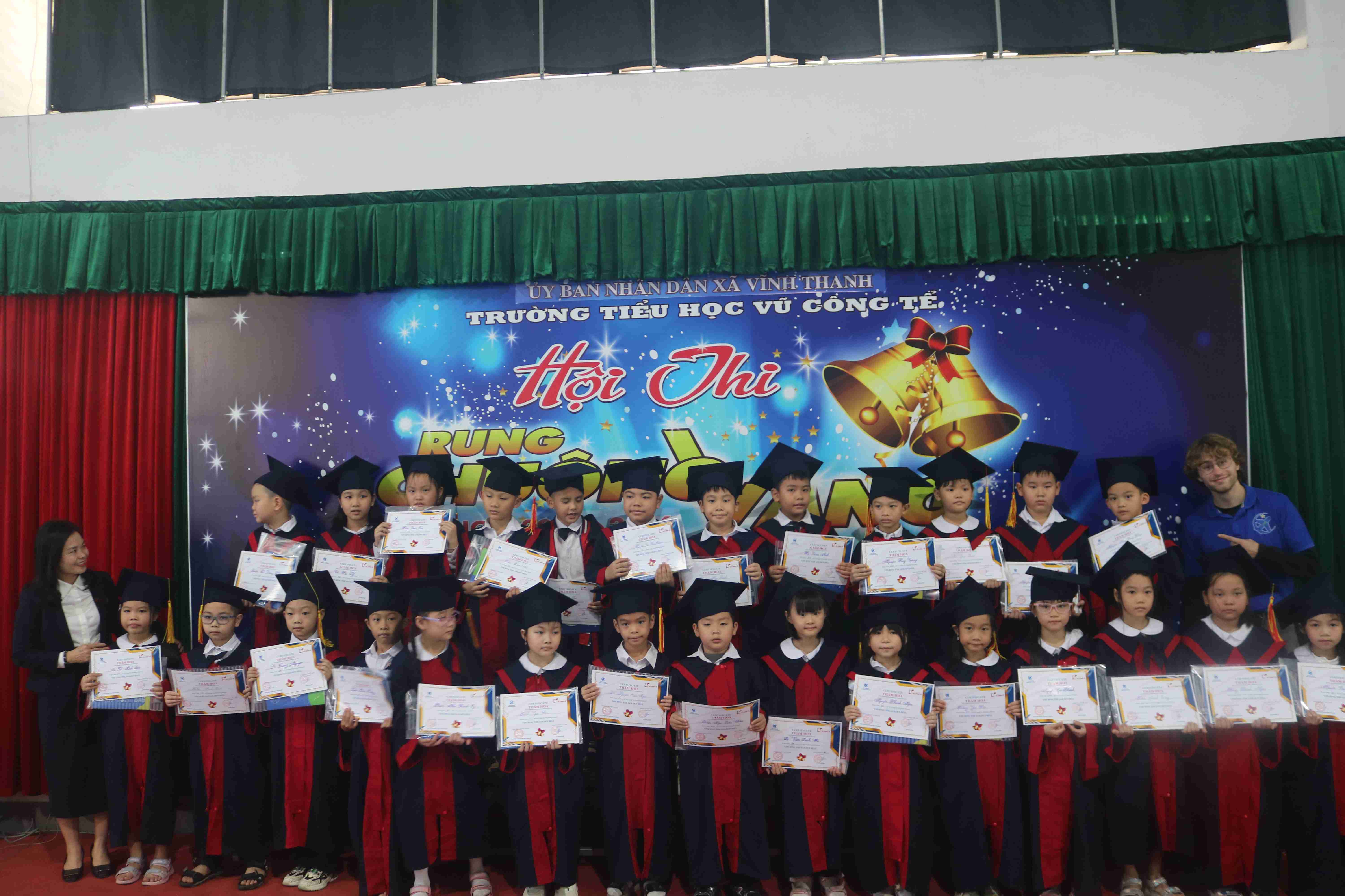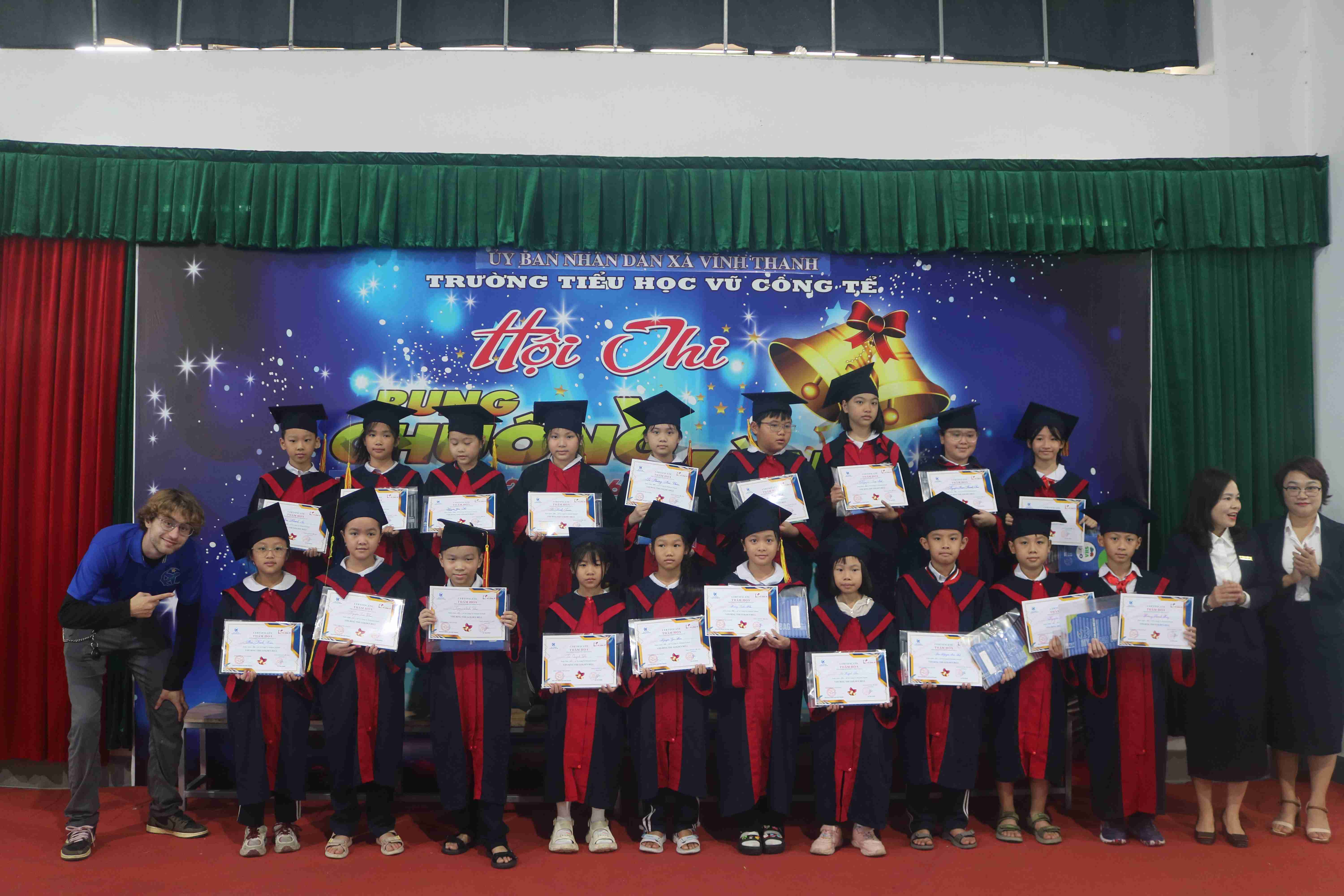 📅 Trong 2 ngày 17/11/2025 và 21/11/2025, tại Trường Tiểu học Vũ Công Tể, chương trình Cuộc thi Rung Chuông Vàng đã được tổ chức sôi nổi với sự phối hợp thực hiện giữa Trường Tiểu học Vũ Công Tể và Trung tâm Ngoại ngữ VHS.