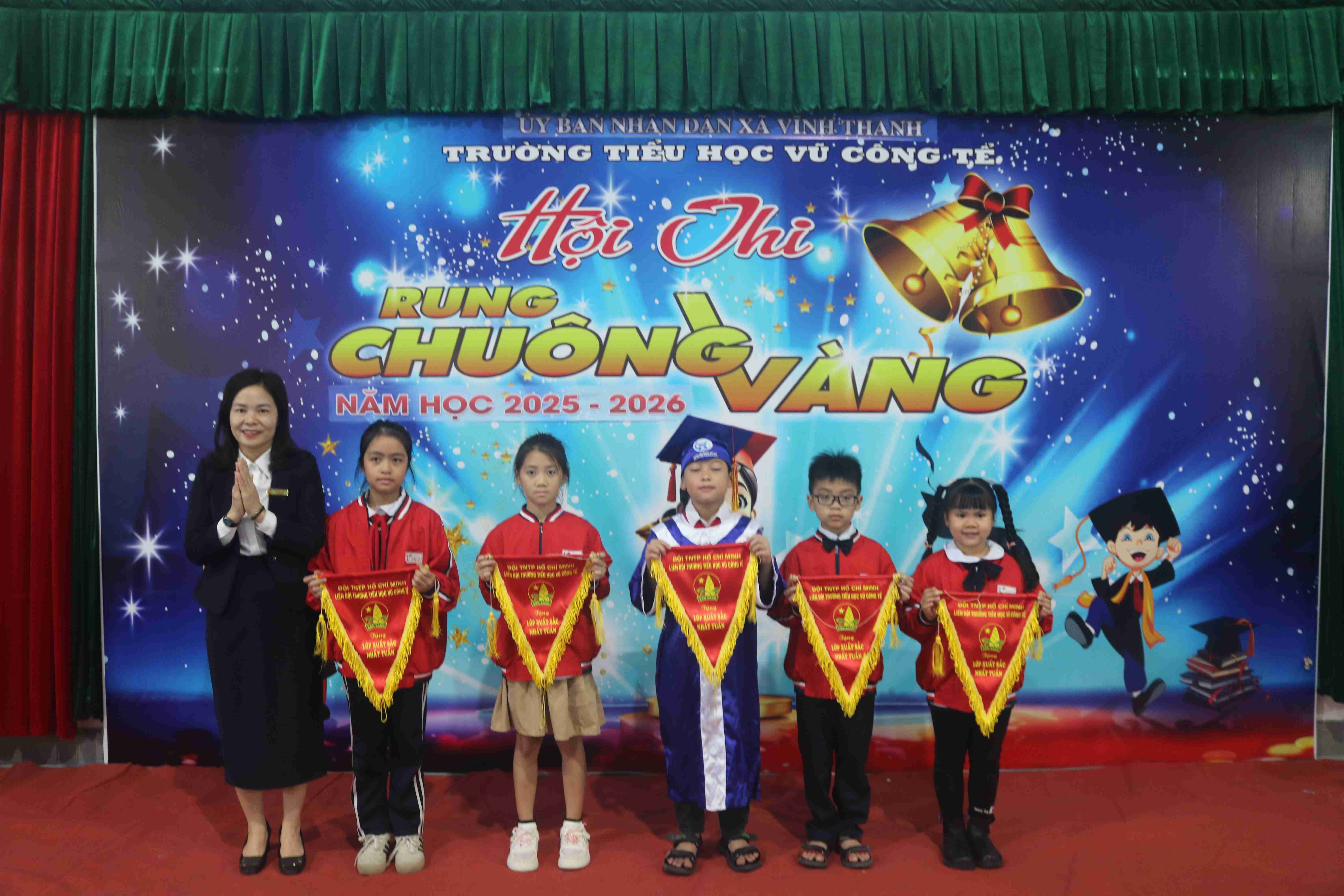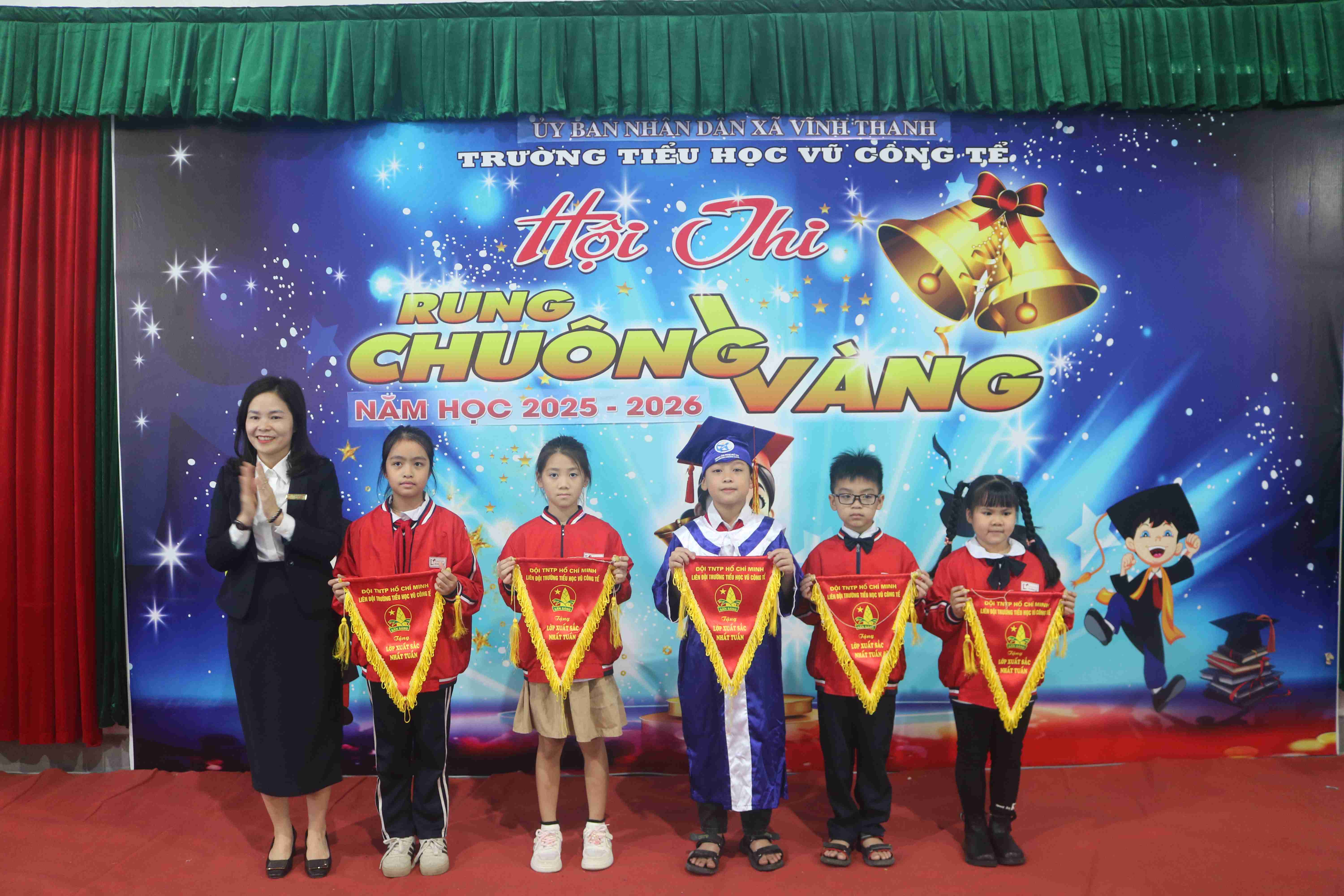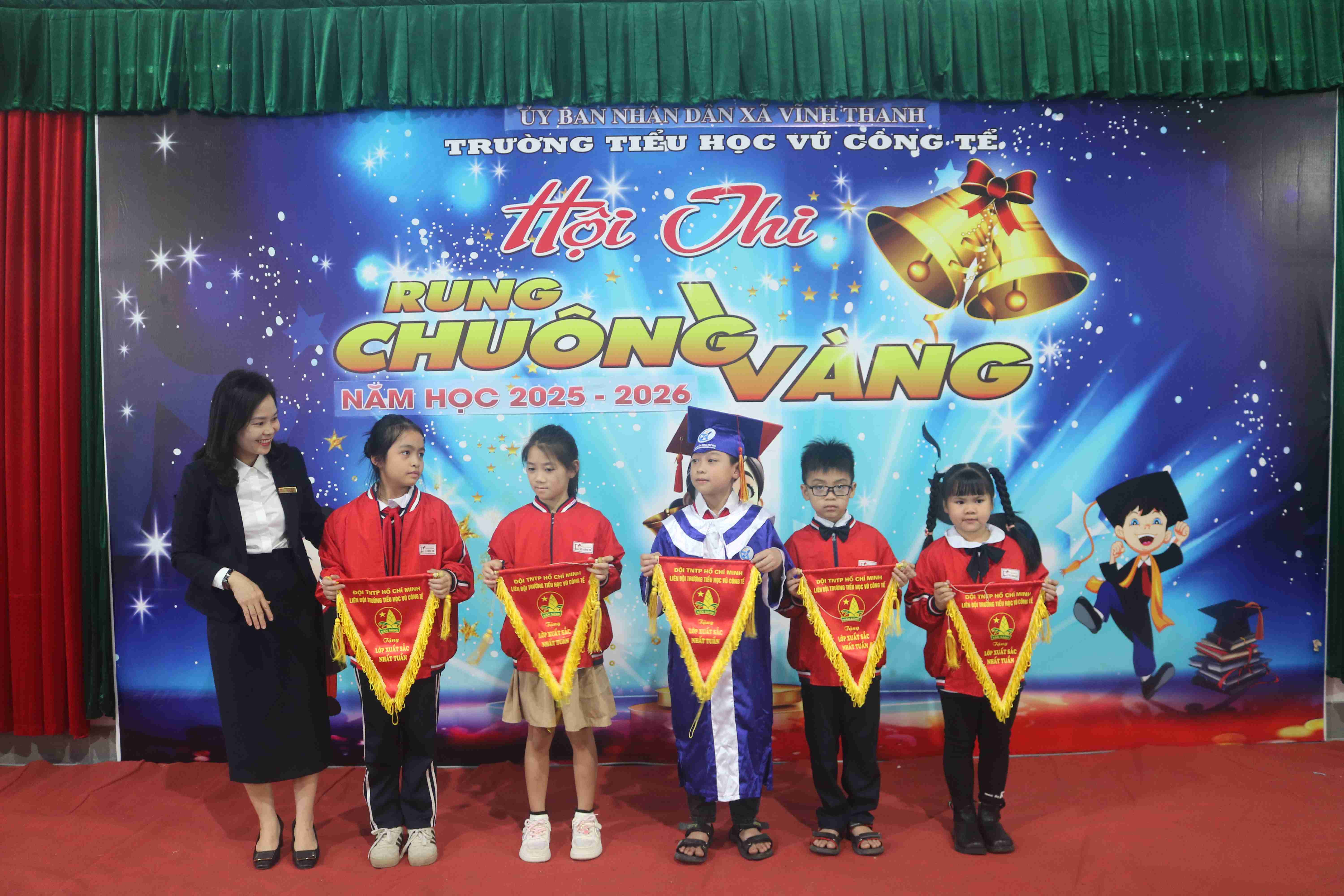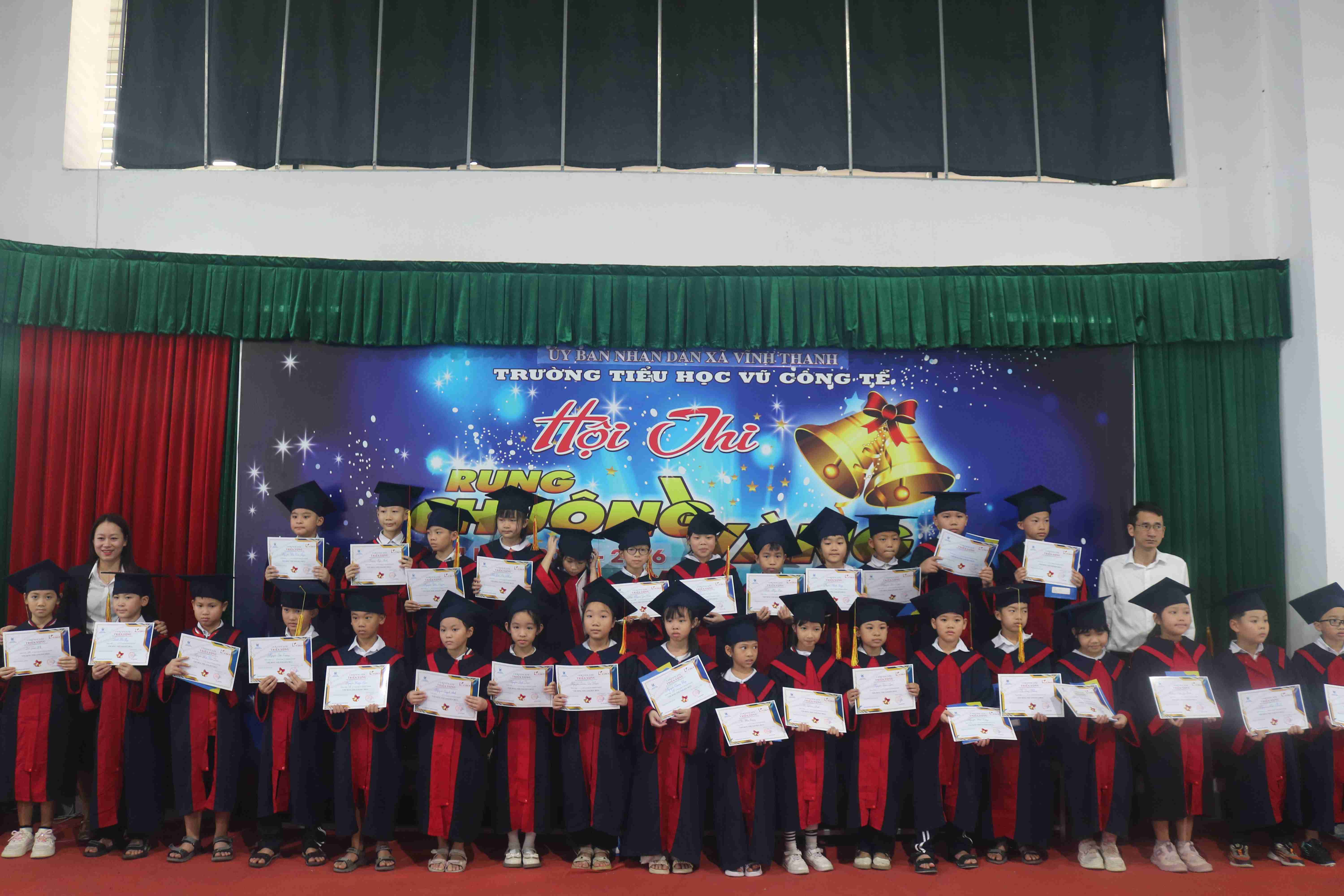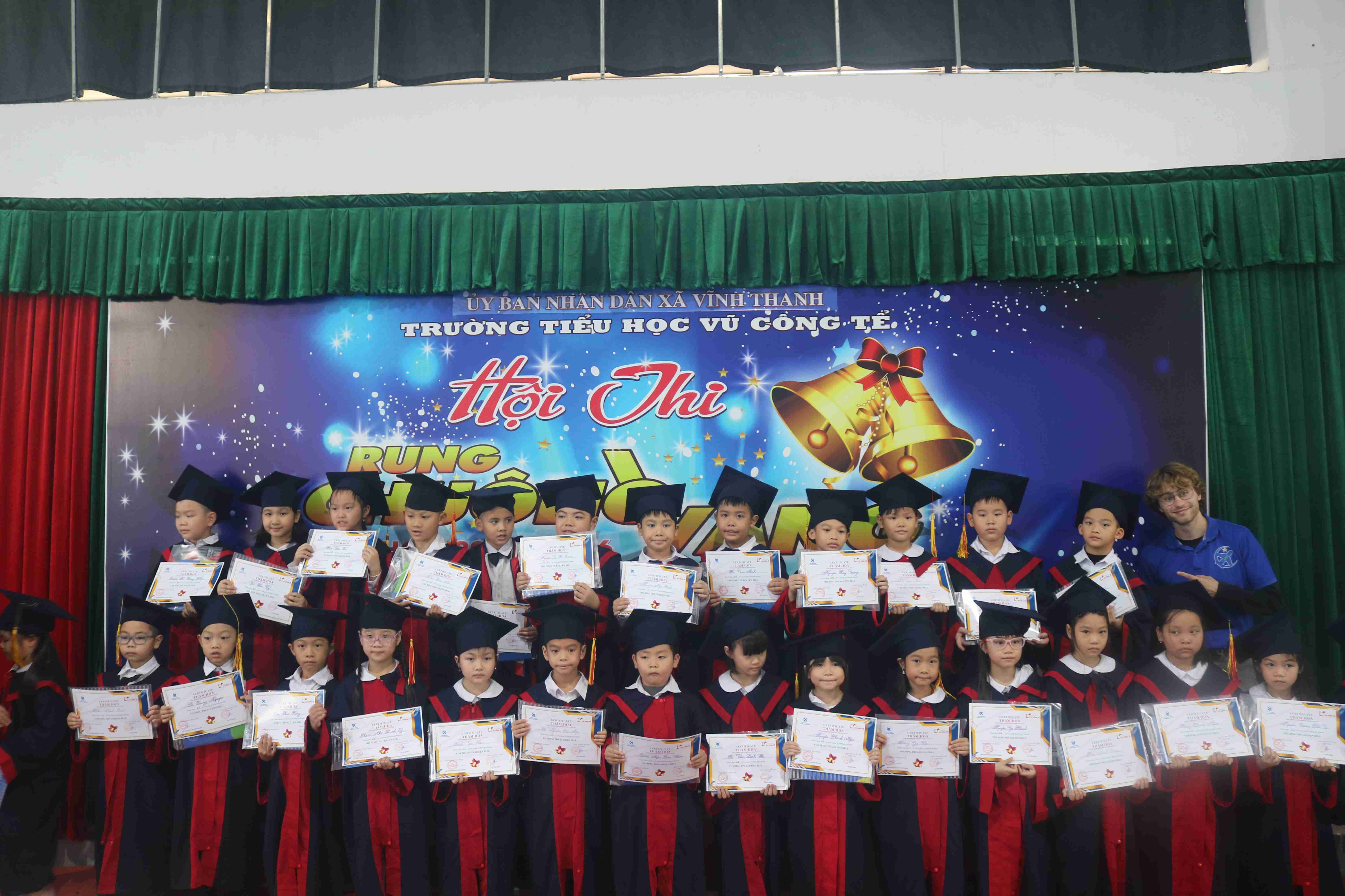 📅 Trong 2 ngày 17/11/2025 và 21/11/2025, tại Trường Tiểu học Vũ Công Tể, chương trình Cuộc thi Rung Chuông Vàng đã được tổ chức sôi nổi với sự phối hợp thực hiện giữa Trường Tiểu học Vũ Công Tể và Trung tâm Ngoại ngữ VHS.