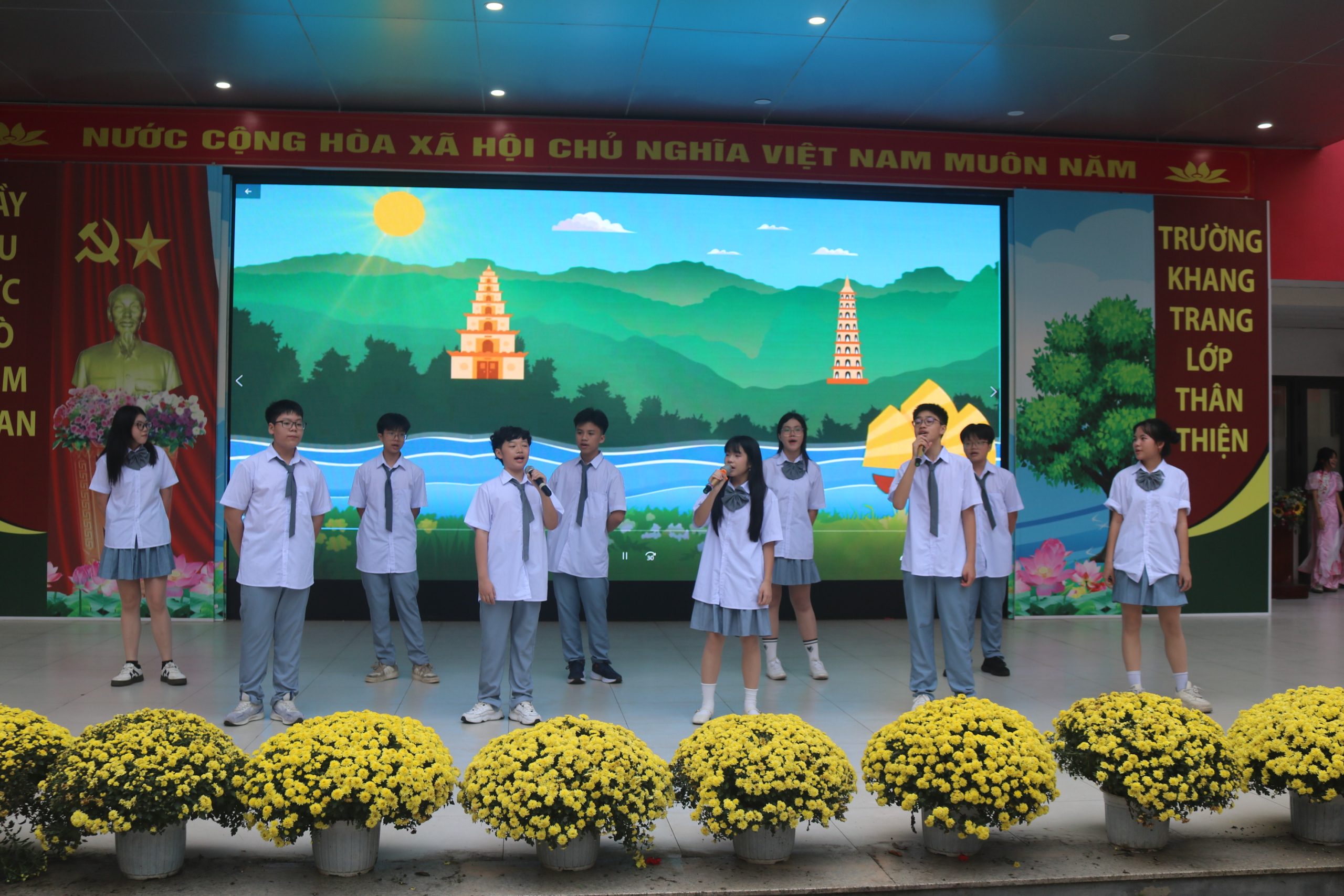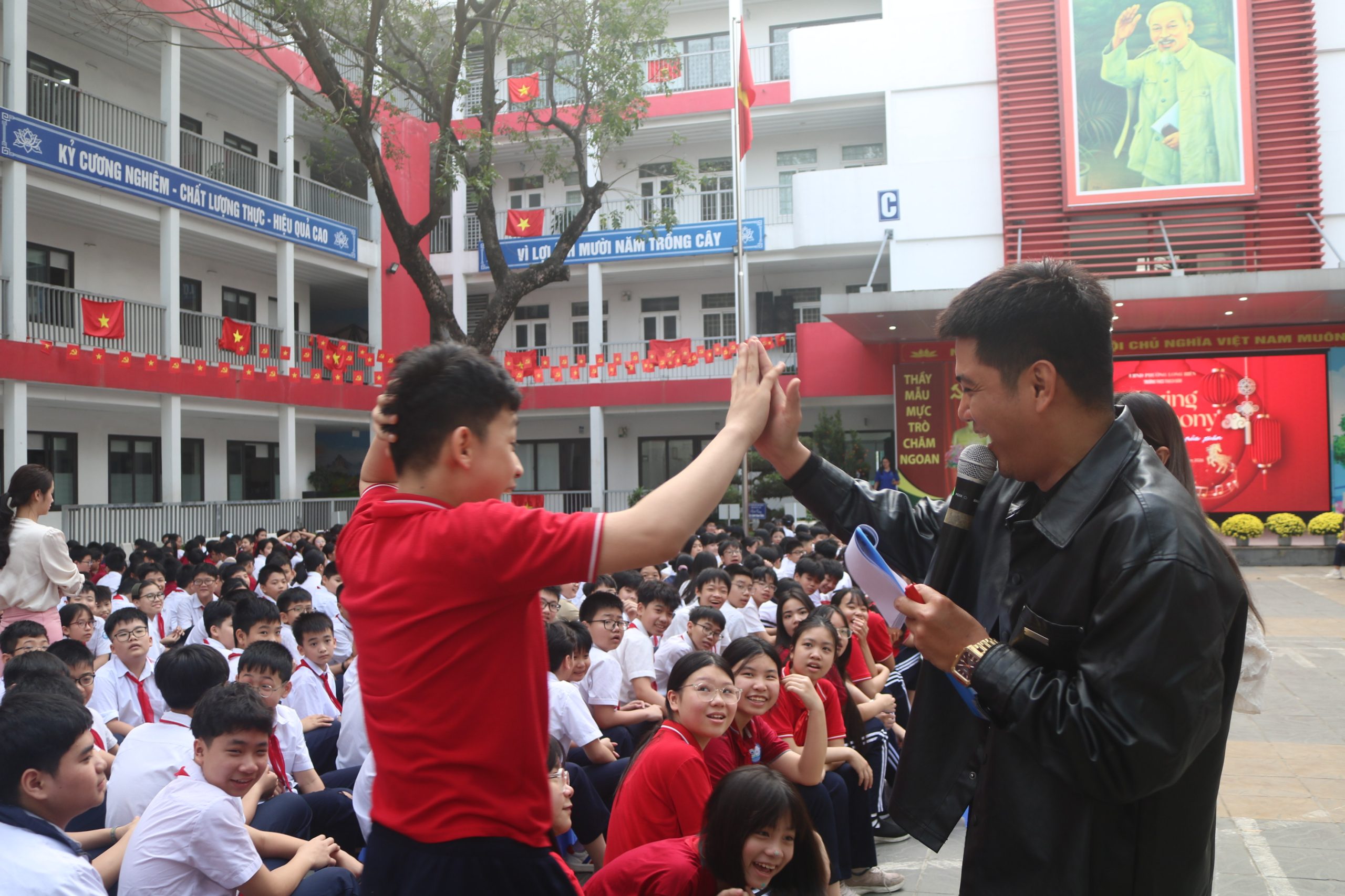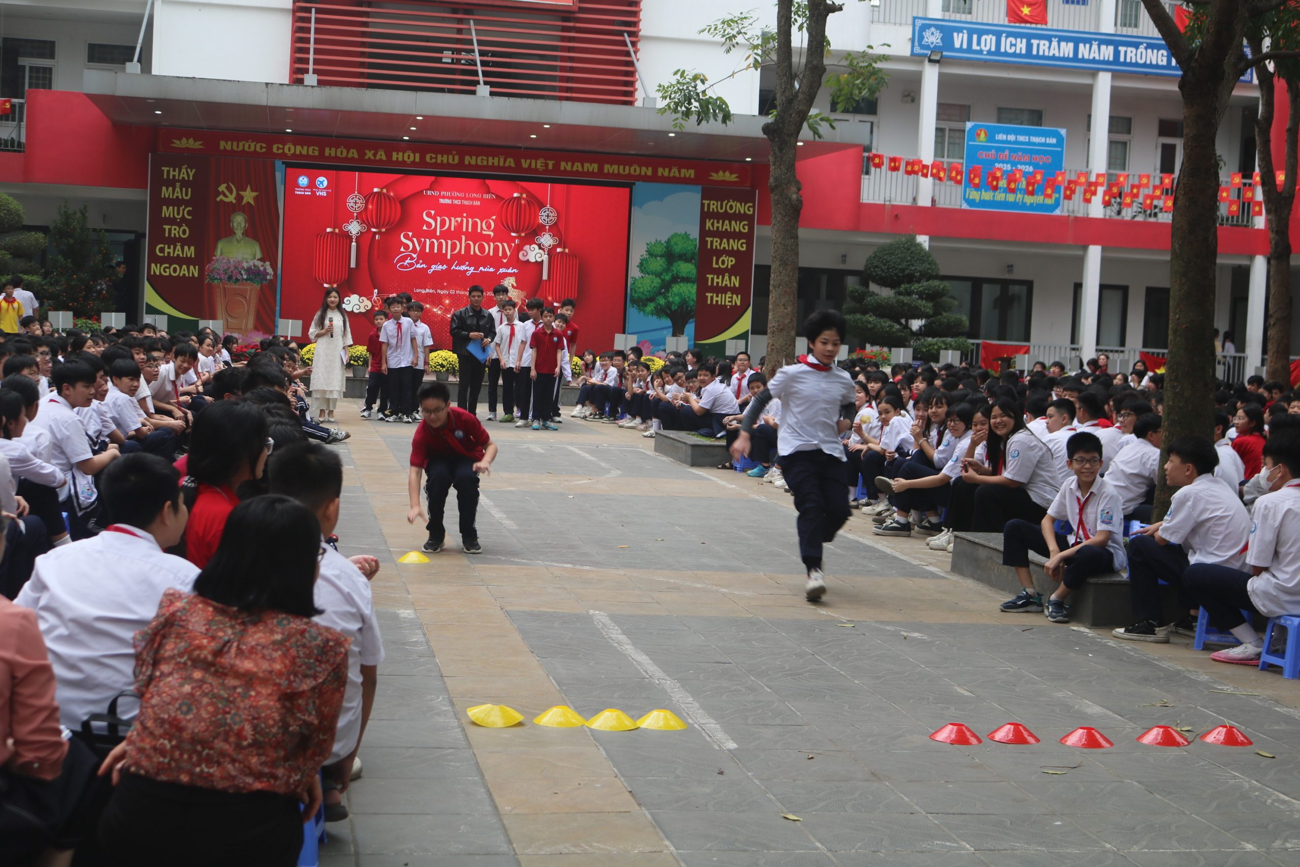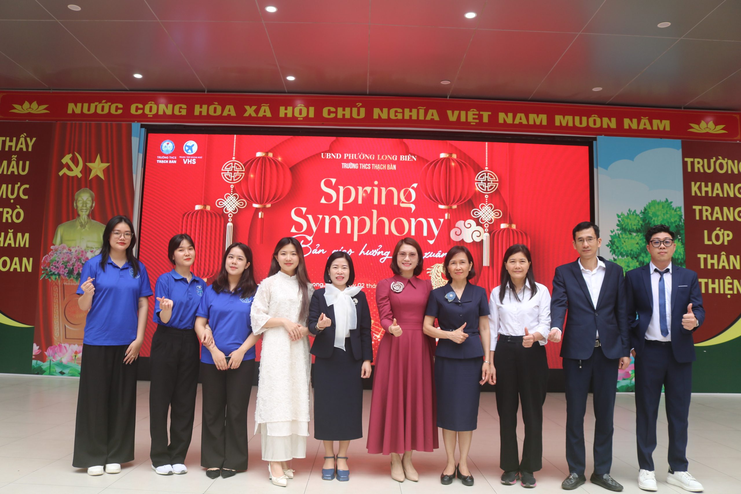 Sáng ngày 02/03/2026 vừa qua, sân trường THCS Thạch Bàn đã trở nên sôi động hơn bao giờ hết với chương trình “SPRING SYMPHONY 2026 – BẢN GIAO HƯỞNG MÙA XUÂN”. Đây là món quà đặc biệt mà Trung tâm Ngoại ngữ VHS phối hợp cùng nhà trường dành tặng cho các bạn học sinh.